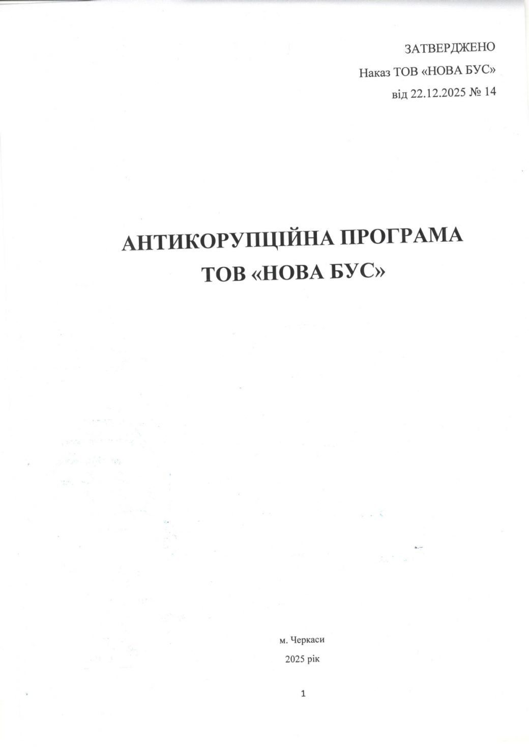 Цією Антикорупційною програмою (далі Програма) товариство 3 обмеженою відповідальністю «НОВА БУС» (далі Компанія), усвідомлюючи відповідальність за утвердження цінностей верховенства права та доброчесності, прагнучи забезпечувати свій сталий розвиток, дбаючи про власну ділову репутацію, для заохочення використання добросовісної комерційної практики, а також в інтересах, зокрема, але не виключно, своїх засновників, працівників, ділових партнерів, клієнтів проголошує, що її […]